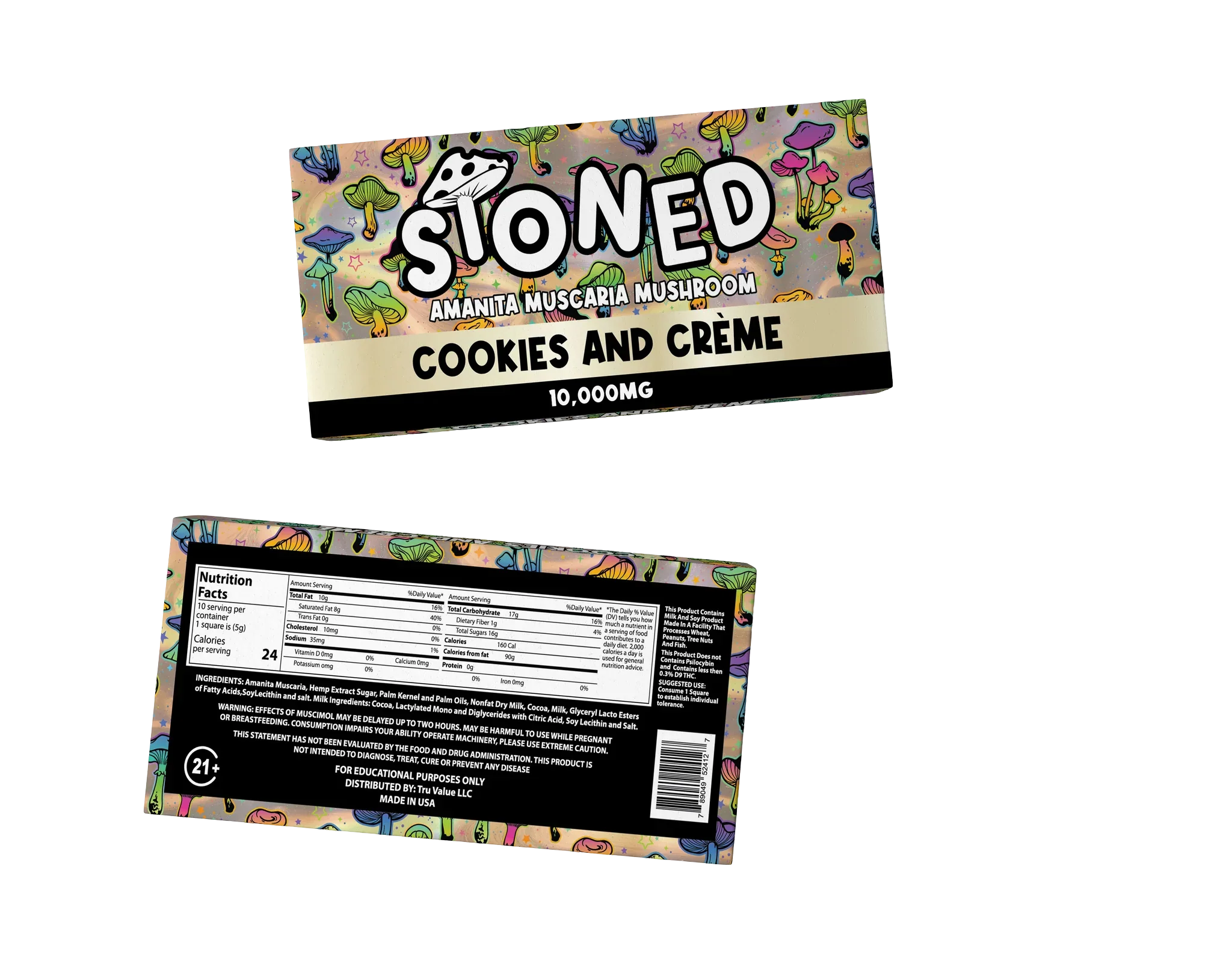 Each Cookies & Crème Amanita Muscaria Bar contains a total of 10,000mg of Amanita Muscaria mushroom content.